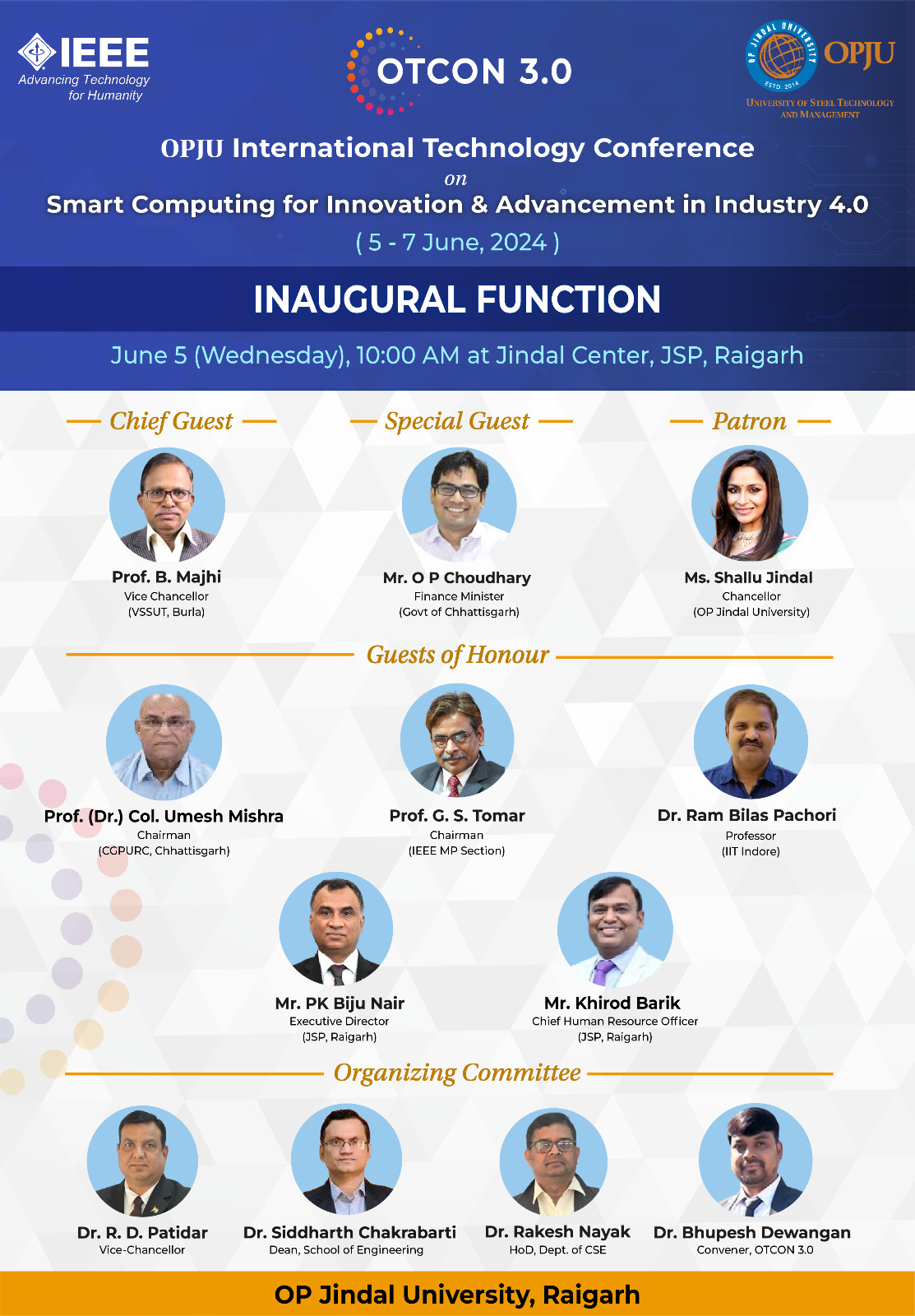 OPJU International Technology Conference (OTCON 3.0) on Smart Computing for Innovation and Advancement in Industry 4.0. (5-7 June, 2024).
